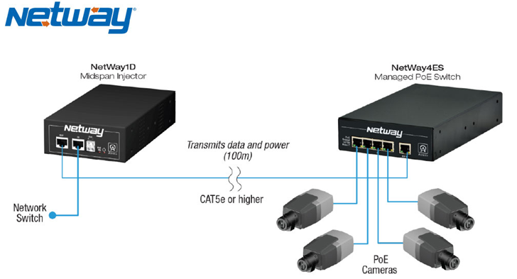 NetWay4ESK - Supports four (4) IP devices over a single CAT5e/6 cable.